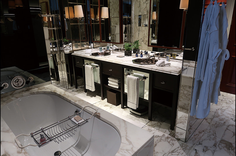 ローズウッド ロンドンの建物は市の重要建築物に指定され、パブリックスペースや回廊にも見どころが多い。キューバ産のマホガニー、7種類を多用した大理石、そしてルネサンス様式の7階まで続く総大理石の壮麗なステアケースなど目を奪われる。細部から外観に至るまで、そのこだわりと完成度において他の追随を許さないローズウッドブランドの贅沢さを満喫したい。
