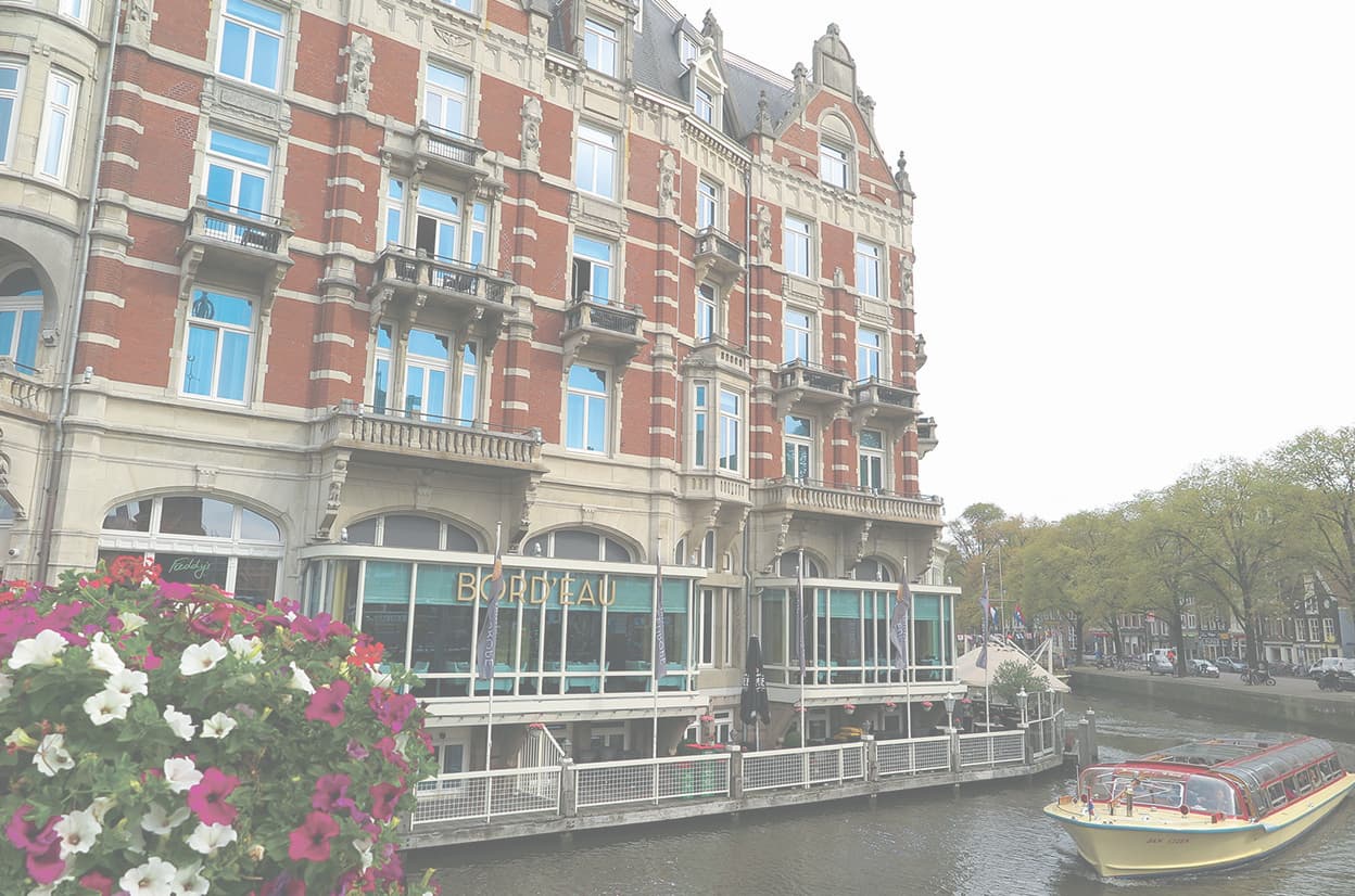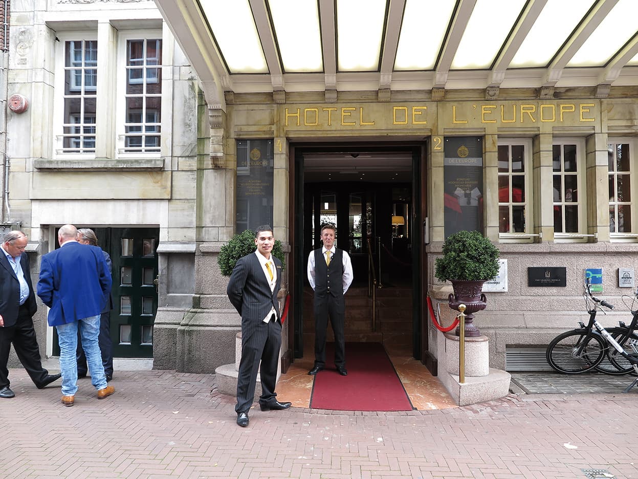 “アムステルダムの王宮”とたたえられ、運河に面して建つ「De L’Europe Amsterdam」の姿は、さながらグリム童話に出てくる中世の城のように優雅な佇まいだ。ヴィクトリアン様式によるロマンティックな外観は、クラシックな街並みが続くアムステルダムでもひときわ目を引くランドマーク的存在である。それ故に、長崎のハウステンボスのシンボルホテルとして人気のある「Hotel Europe」は、実はこのホテルを忠実に模して建設されたものである。屈指の名門ホテルでもあるため、アムステルダム名物の運河クルーズ船に乗り、ホテルを通過する際は必ず“名所”として案内されるくらいだ。