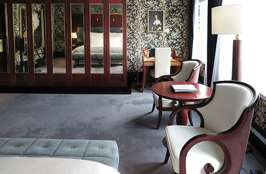 ド リューロープは、スイートを含め全111室の個性豊かな客室を用意している。正面エントランスは極めて控えめであるが、一歩館内に入るとまばゆいシャンデリアと巨匠たちの絵画が壁を飾る華麗なロビーラウンジ「Promenade」に目を奪われる。筆者にアサインされた部屋は「Junior Suite」のカテゴリーで、斬新なブティックホテルの趣だ。メインダイニング「Bord'Eau」はミシュラン2ツ星を獲得した本格的フランス料理で評価が高い。その他ブラッスリースタイルの「Hoofdstad Brasserie」と運河に沿ってテラス「Hèt Terras」を用意している。メインバー「Freddy's Bar」はHeineken社のCEOであったFreddy Heineken氏の名を冠したオリジナルバーである。スパ施設「Skins Institute - De L'Europe」はLHWのリーディング・スパ賞を受賞し、運河の見えるスイミングプールが魅力だ。