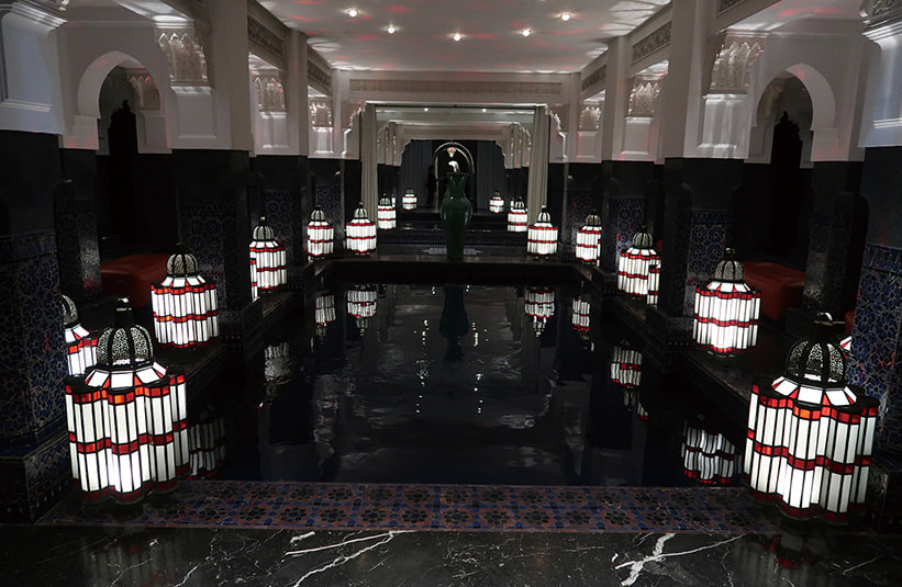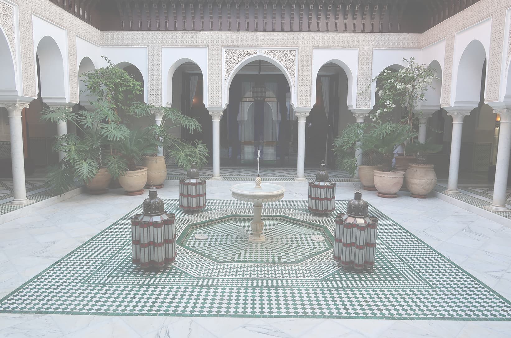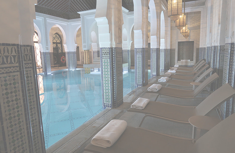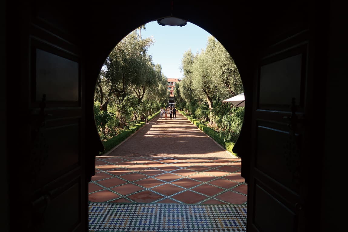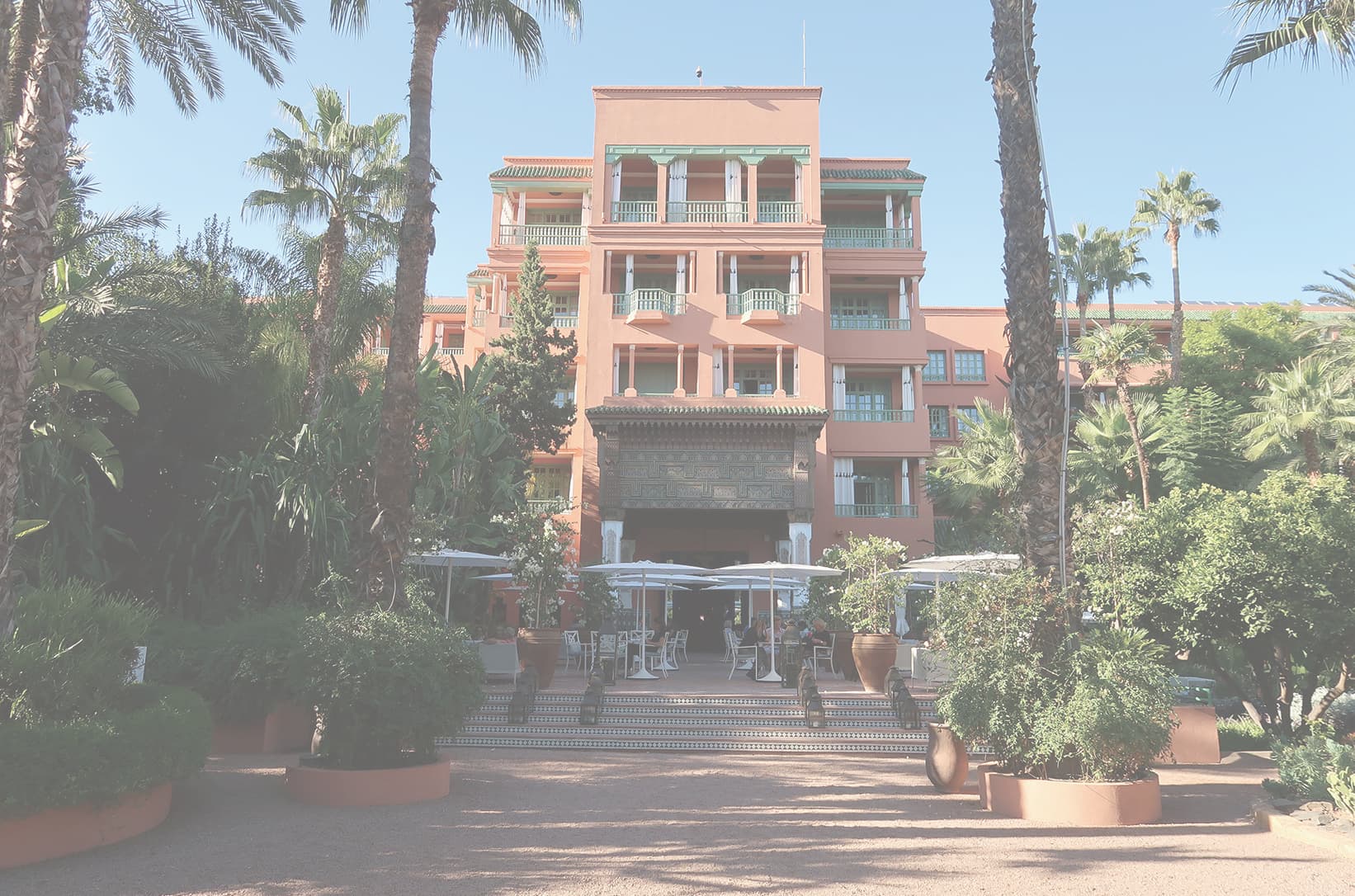ラ マムーニア「La Mamounia」は1923年のオープン以来、マラケシュを代表する伝統と格式を誇るホテルとしてその名を馳せている。旧市街を囲む12世紀の城壁内にあり、近隣のスークの慌しさを忘れさせてくれるオアシスと言える。過去に5度の大規模改装を施し、直近の改装は2008年から3年間を掛けて、モナコの「メトロポール」などを手がけた著名デザイナーのジャック・ガルシアが担当。創業時からのアラブ・アンダルシアと、ヨーロッパのアールデコ様式を融合した格式の高さに、モロッコ先住民ベルベル人の伝統様式が加味され、より現代的な“エキゾチシズム”を演出している。