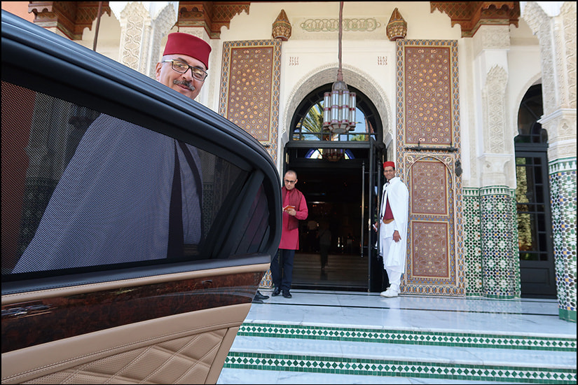 正面エントランス車寄せに到着すると、モロッコの伝統衣装を纏ったドアマンが笑顔で迎えてくれる