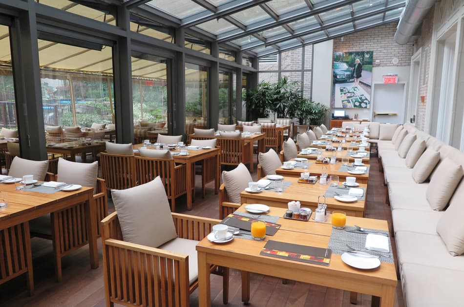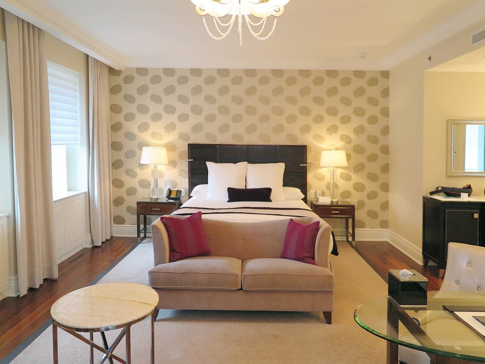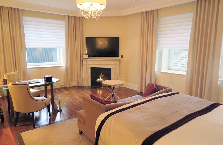 RC/Mはモントリオールで最古のホテルとしても有名だ。風格を感じさせるその外観は、昔ながらの看板と共に味わいある雰囲気を醸し出している。アールヌーボーのロビーは個人の邸宅といった趣で、正面の壮麗なラウンジ「Palm Court」に目を奪われる。筆者にアサインされた部屋は「Jr. Suite King Room」で約55㎡の広さがあり、暖炉を配したコンテンポラリー感覚のスイートだ。メインダイニング「Maison Boulud」はアメリカのフランス料理界を代表する重鎮、ダニエル・ブリュ氏監修の名店で、中庭に面したエレガントなテラス席がお勧めだ。ホテル最上階ペントハウスにはスタイリッシュなプール「Rooftop Pool」を用意しており、美しい市内の景色を眺めながら楽しめる。