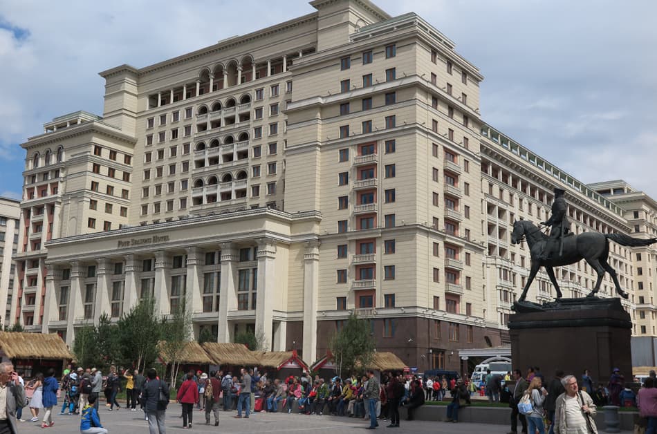 旧ホテルモスクワは、1930年代のモスクワ都市再開発に関連して計画され、二度の政府コンペを経て1935年に開業した。ロシア伝統の構成主義と古典主義が混在した建築様式に、約1000室の客室を備えた最高級ホテルであった。そのため当初計画より3倍 の規模と費用が掛かった大型工事と言われる。その後のソ連崩壊などの変遷を経て、2004年の大規模地下駐車場の建設に合わせホテルは解体された。新しいホテルの外観は旧館のクラシカルな趣を正確に再現し、住宅、オフィス、ショッピングセンター等を包含して華々しくオープンした。