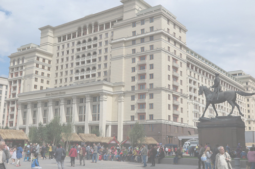 モスクワ中心部に圧倒的存在感で君臨していた伝説的ホテル「旧ホテルモスクワ」の跡地に、新たに再建されたホテル「Four Seasons Hotel Moscow」が2014年秋にオープンした(以下、FS/M)。ロシアではサンクトペテルブルクに次ぐ2番目のフォーシーズンズブランドの誕生である。赤の広場に隣接するマネージナヤ広場に立地し、客室やレストランからクレムリンの建物が望める理想的な環境を誇る、モスクワを代表する迎賓館的ホテルだ。モダンな客室は設備も申し分なく最低でも40㎡以上の広さがあり、パブリックスペースも余裕の面積を確保している。