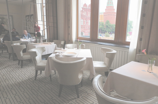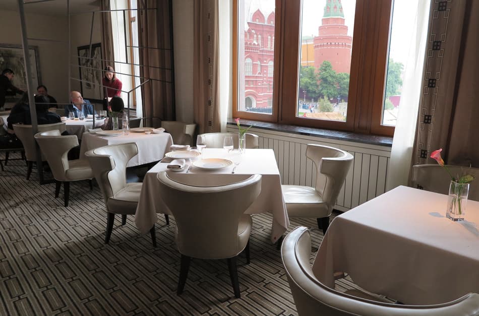 FS/Mは41のスイートを含む全180室の客室を擁し、1930年代の古典的な要素を取り入れつつ、館内は気品あるコンテンポラリーな雰囲気に生まれ変わった。筆者にアサインされた部屋は「Grand Premier Room」で、約70㎡の広さを持ち、クレムリンを望むバルコニー付きの部屋だ。メインダイニング「Quadrum」はイタリアン・地中海料理だがスマートなフレンチの要素を根底に置いている。ここの魅力はレストランの位置であろう。窓側の席から、赤の広場やクレムリンの建物が間近に望め、これ程のぜいたくな空間は世界でも極めてまれである。レストラン「Bystro」はブレックファスト専用として用意されメニューも豊富だ。スパ施設「Amnis Spa」は3000㎡のモスクワ最大の規模を誇り、17室のトリートメントルームを持つ。スイミングプールは、トップライトから差し込む陽光が気持ちよく、プールサイドカフェ「Amnis Café」が利用できる。