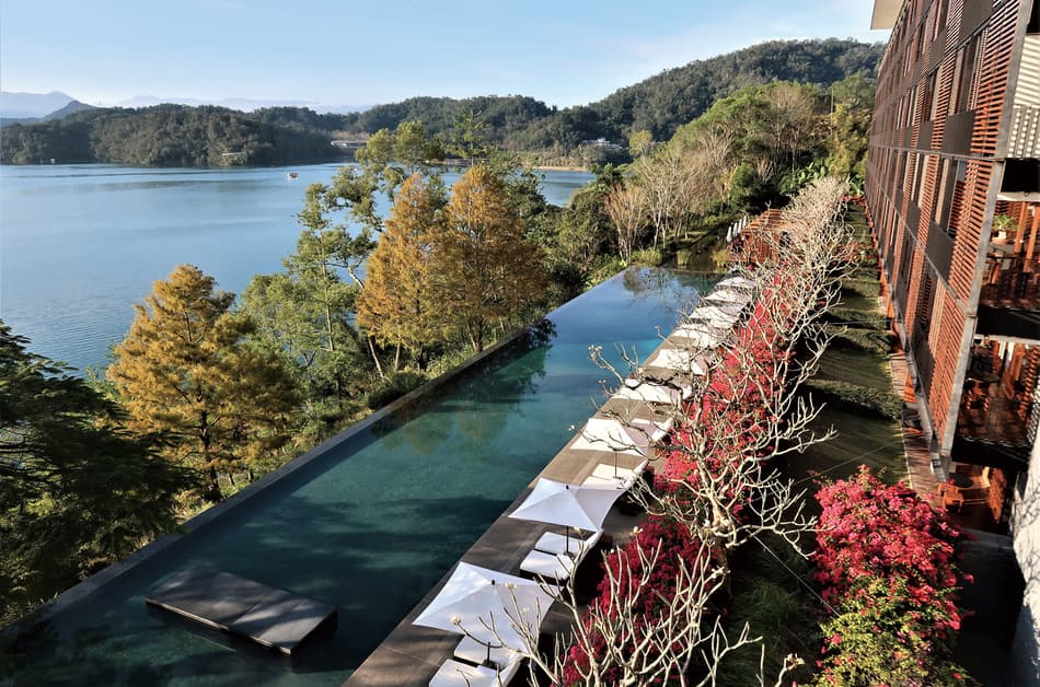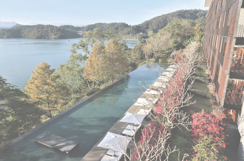 ザ・ラルー 涵碧樓「The Lalu, Sun Moon Lake」は、かつてAMANのセカンドライン、GHMグループによって運営されていた台湾屈指のリゾートホテルである。担当した建築デザイナーは、多くのアマンリゾートを手掛けるケリー・ヒルというだけあり、その空間レイアウトは台湾とは思えないスタイリッシュなデザイン構成だ。ザ・ラルー 涵碧樓の目の前には形容しがたい美しい湖が広がる。この湖の中央付近にあるラルー島「拉魯島」を境として、東側が丸く太陽の形に、西側が三日月形で月に見えるとされ、“日月潭“ 「Sun Moon Lake」と名付けられた。