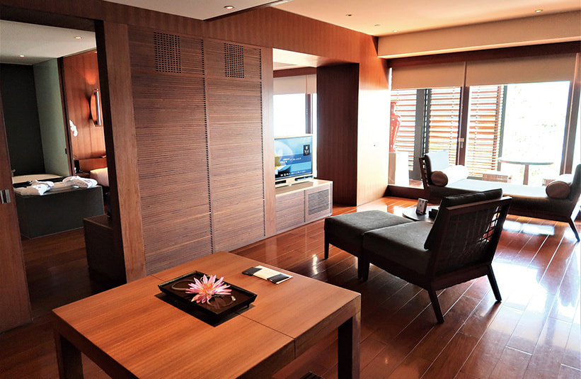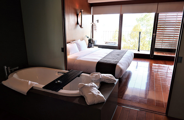 ザ・ラルー 涵碧樓の96室はオールスイートタイプの構成で、そのほか専用プールが付いたヴィラタイプの「Courtyard Villa」も用意している。エントランスホールは8階の最上階にあり、各客室へは階下に降りていくスタイルだ。今回は「One-bedroom Lakeview Suite」をご紹介したい。約100㎡のナチュラル志向の部屋で、床、壁など全体に木のぬくもりが感じられる。窓を開け、広いバルコニーから湖と山のコントラストが美しい景観を満喫できる。レストランは充実しており、日月潭を眺めながら食事をできる中華メインダイニング「湖光軒」、朝食メニューが豊富なカジュアルレストラン「Oriental Brasserie」のほか、和食堂、茶藝館スタイルのティーハウスを用意している。スパ施設「The Lalu Spa」は別棟にあり、見事な絶景が望めるトリートメントルームや日本式浴室も満足できる。
