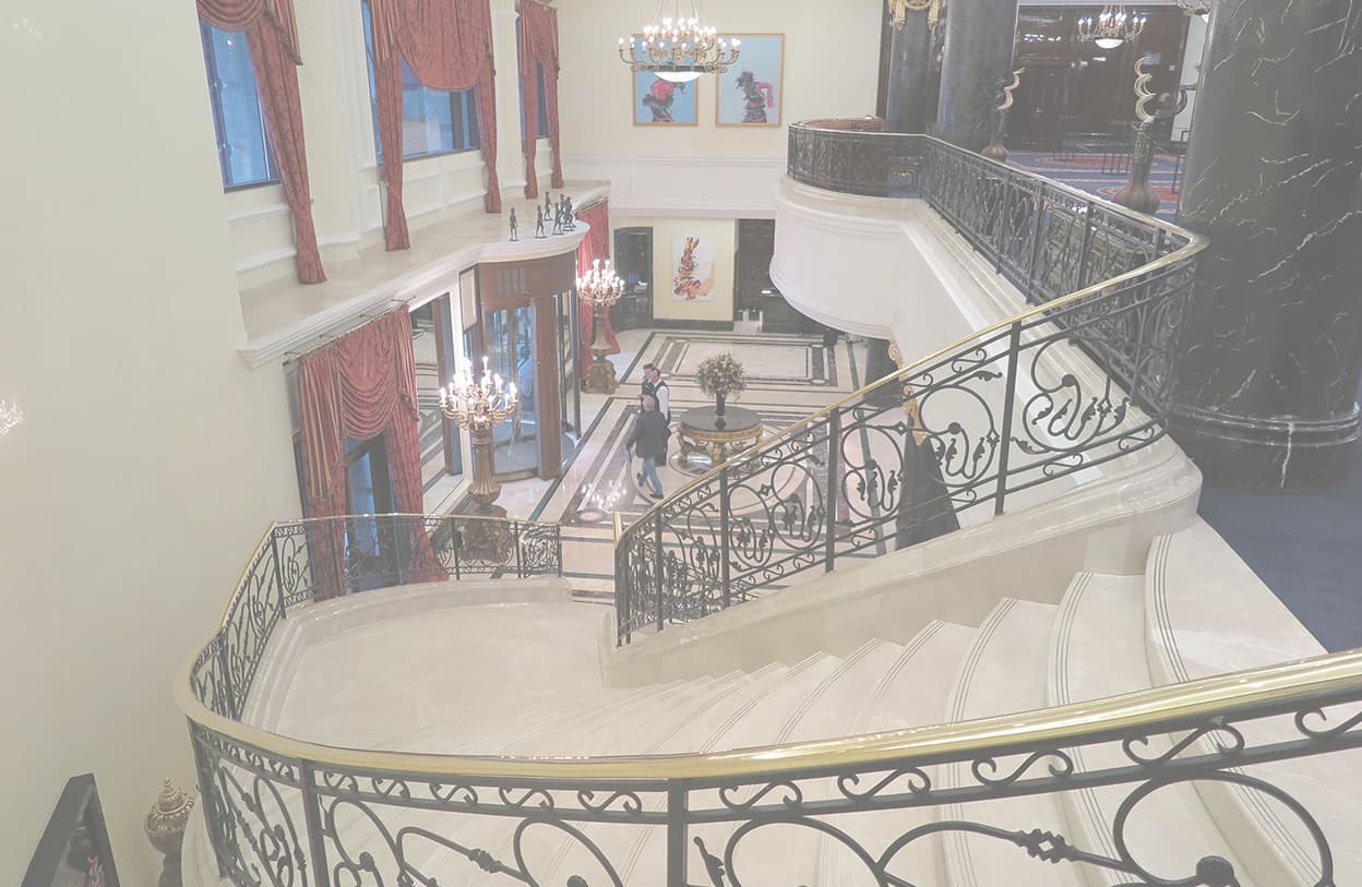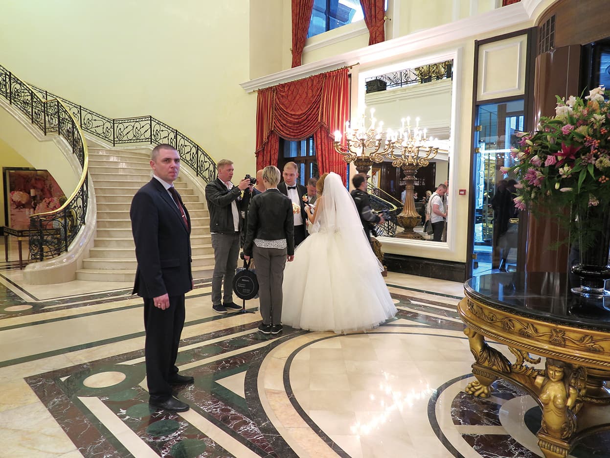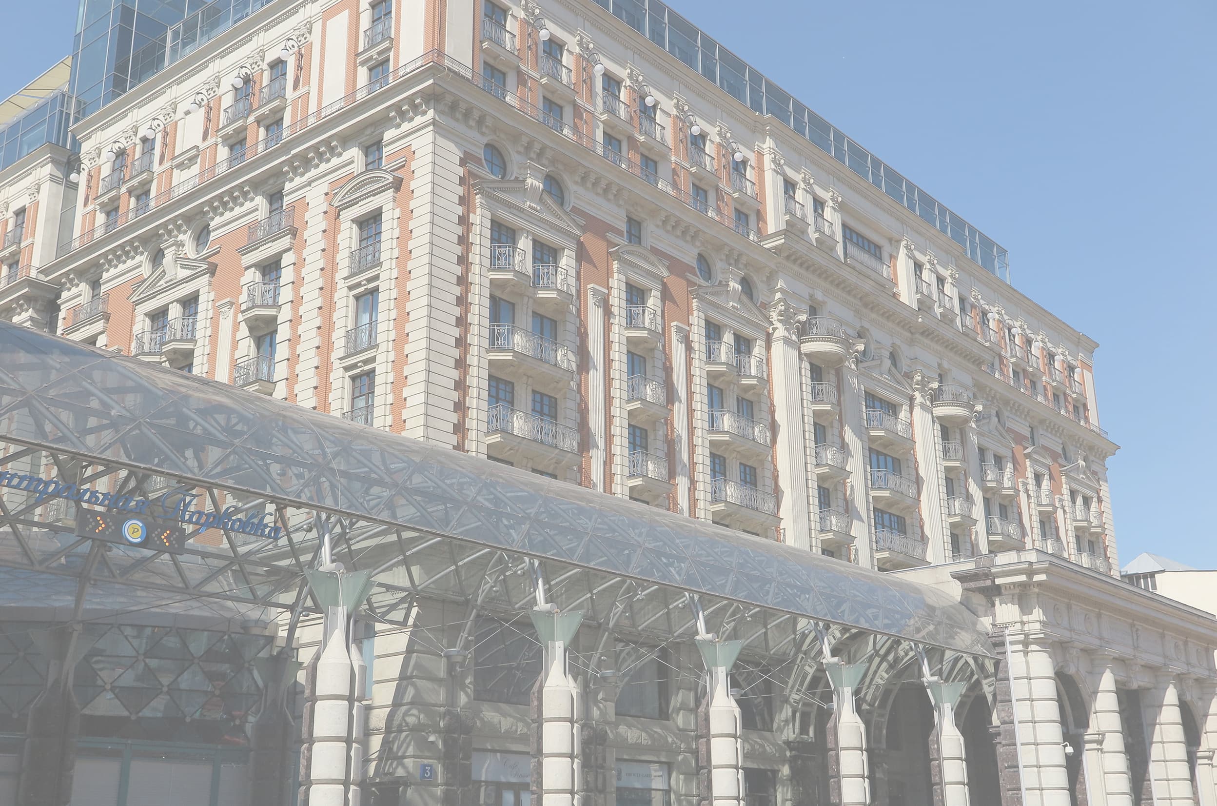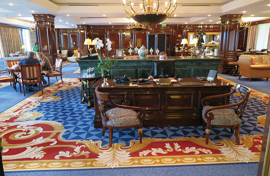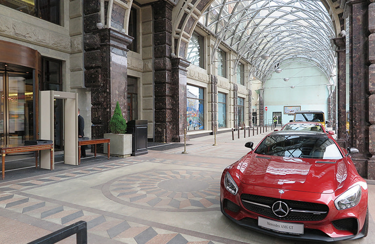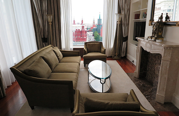 「The Ritz-Carlton Moscow」(以下、RC/M)の開業は2007年7月、ソビエト時代の絶頂期にあった「インツーリストホテル」を取り壊して全面的に建て直された。市内随一の目抜き通りのトゥベルスカヤ通りに立地し、正面ファサードは帝政ロシア時代の建築様式を模した威風堂々とした佇まいだ。他方、内装はクラシカルなデザインを基本にエレガントな雰囲気とコンテンポラリーなインテリアが施されている。クレムリンや赤の広場の近くに位置し、ソビエト時代の老舗ホテル「ホテル・ナツィオナーリ」越しに眺望するクレムリンは絶景で、まさにこのホテルの醍醐味とも言える。