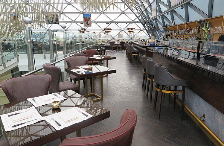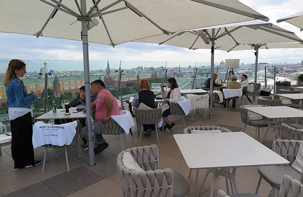 残念なのは、現在トゥベルスカヤ通りが全面工事中で正面玄関前は工事車両で塞がれているが、工事完成後はパリのシャンゼリゼに匹敵するモスクワ屈指のアベニューになる予定だ。RC/Mでの宿泊は、是非、クラブルームをお勧めしたい。専用のクラブラウンジは、モスクワに滞在していることを忘れるくらいの気品を保ち、NYのリッツカールトンと見間違うくらいだ。また、最上階にある「O2 Lounge」のルーフトップテラス席からの眺望はモスクワ一の絶景として有名である。ここの寿司コーナーは、数あるモスクワの日本食レストランの中でも最高級といわれる「誠司」のシェフたちが握り、高評価を得ている。