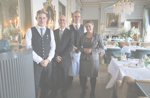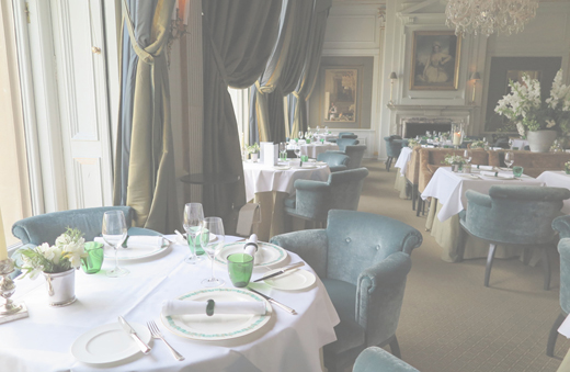 ベルキャプテンに案内され、館内に足を一歩踏み入れると歴史の重さが伝わる「Great Hall」に目を奪われる。筆者にアサインされた部屋は、首相にもなったGeorge Canning にちなんだデラックス・スイートの「Canning」。ファイアーピースや天蓋付きのベッドなどエレガントな部屋だ。各部屋は客室番号の代わりに各界の著名人の名が記され39室ある。ミシュラン・スターシェフのAndre Garrett 氏が率いる「Andre Garrett at Cliveden」は館の中心にあり、広大なガーデンを望む気品あるメインダイニングだ。レストランに隣接して「The Library」、「The French Dining Room」、「The Boudoir and Tote Room」など麗しきサロンを用意してゲストの要望に応えている。専用スパ「The Pavilion Spa」は別棟にあり、屋外・屋内の二つのプールで楽しめる。