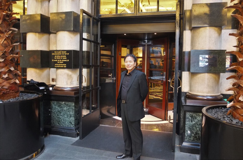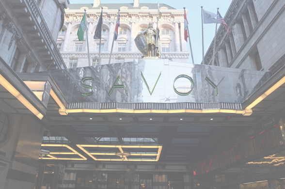 “The Savoy”、すべてはこのホテルから始まった。サヴォイ伯ピーターの黄金像が圧倒的存在感を放つ、ザ・サヴォイのエントランス・アプローチ右手にサヴォイ劇場がある。この劇場こそがサヴォイの原点であり、劇場のオーナー兼興行主で「ギルバート・アンド・サリバン・オペラ」の創始者であるリチャード・ドイリー・カートが、1889年に開業したホテルがザ・サヴォイである。進取の気性に富むカートは、視察に出かけたニューヨークを始めとしてアメリカ滞在中に体験した先進的なホテルとレストランを、ロンドン社交界に持ち込むことを決意する。当時の英国上流社会はホテルを社交の場とするコンセプトがなく、ホテルはあくまで旅先の宿泊施設であり、外食も男性だけの所業とされていた時代であった。野心に燃えるカートはさっそくホテル建設に取り掛かり、バスルーム付き客室、エレベーター、世界初の防火床、自家用発電など当時の最先端技術を取り入れた近代的ホテルを完成させる。