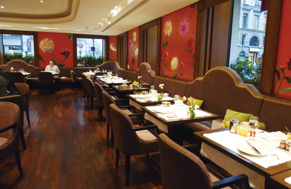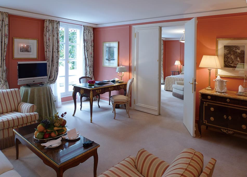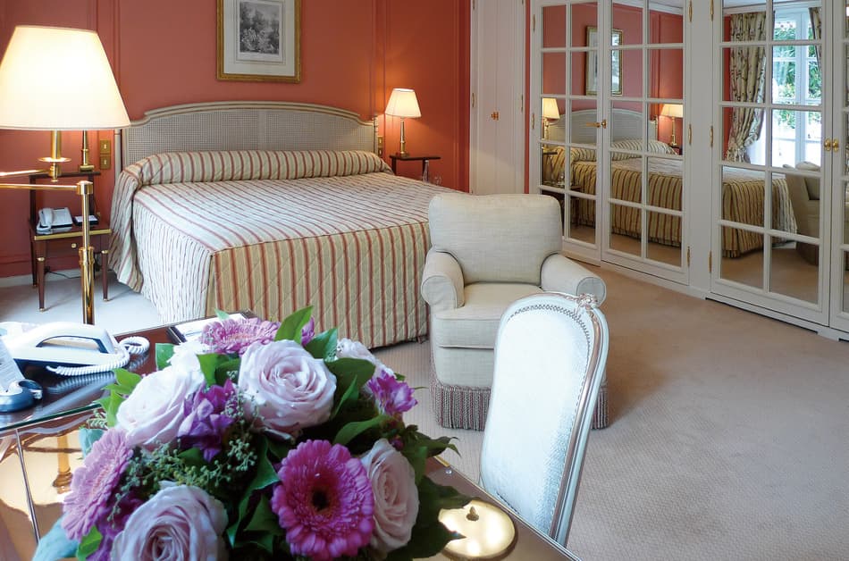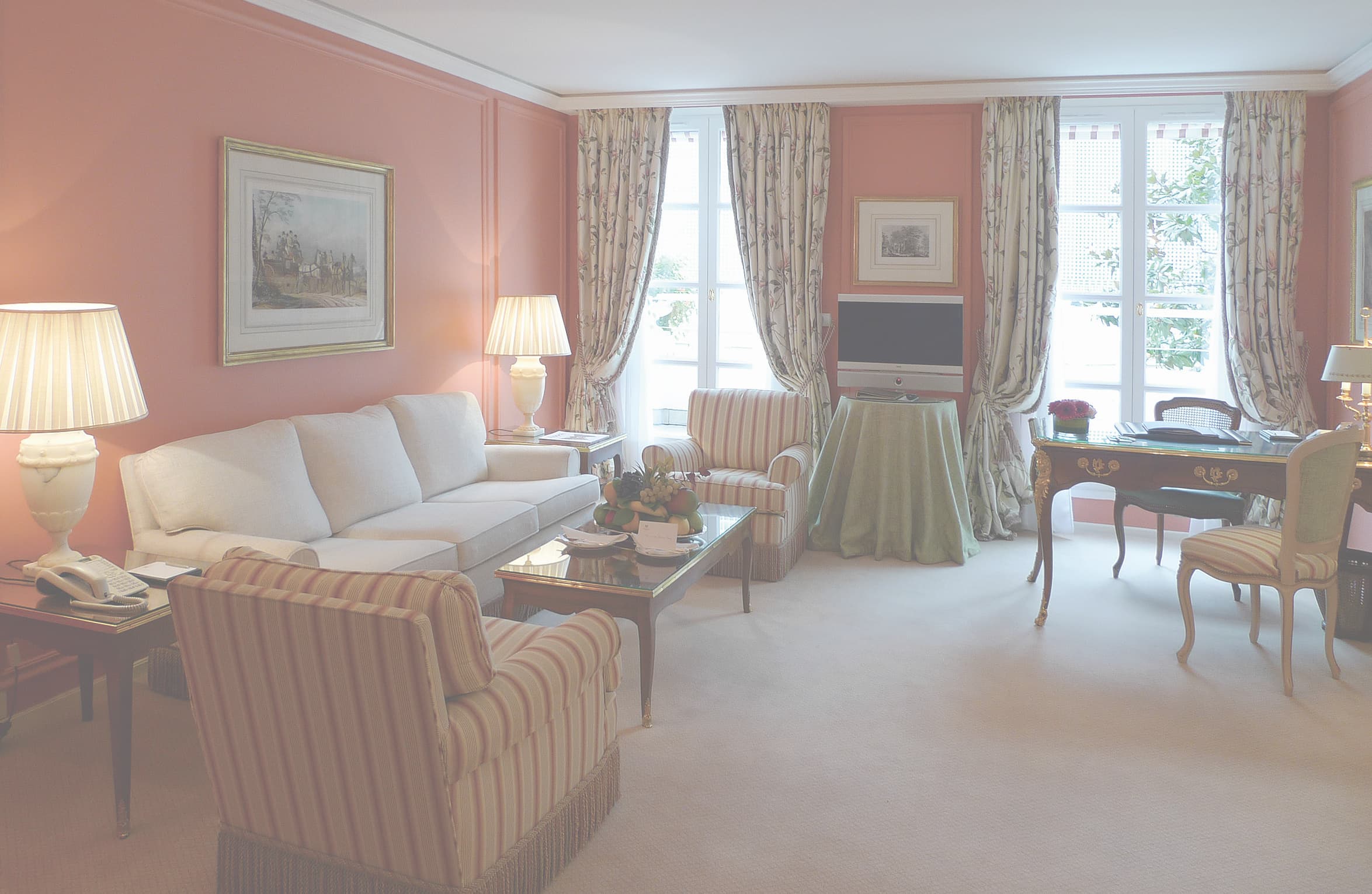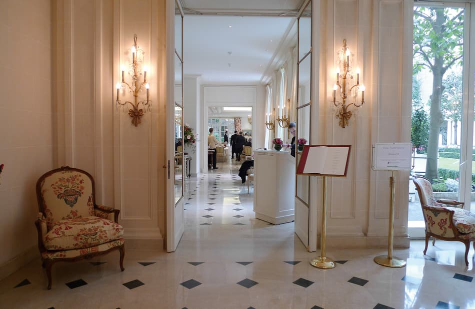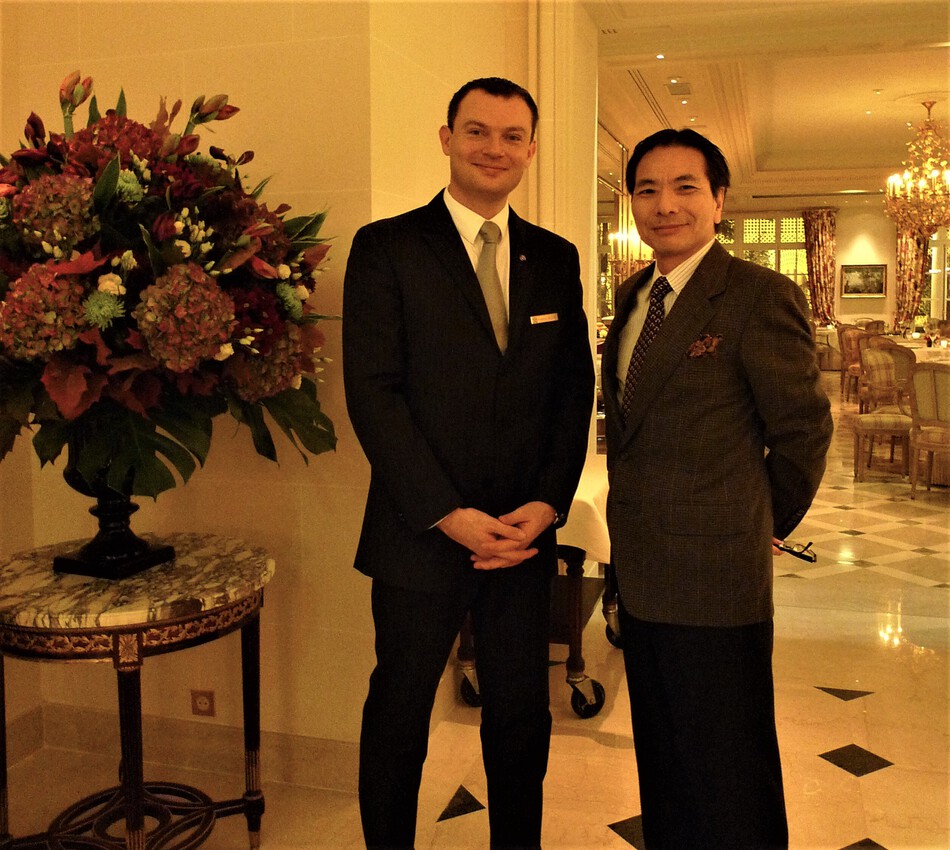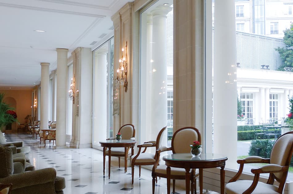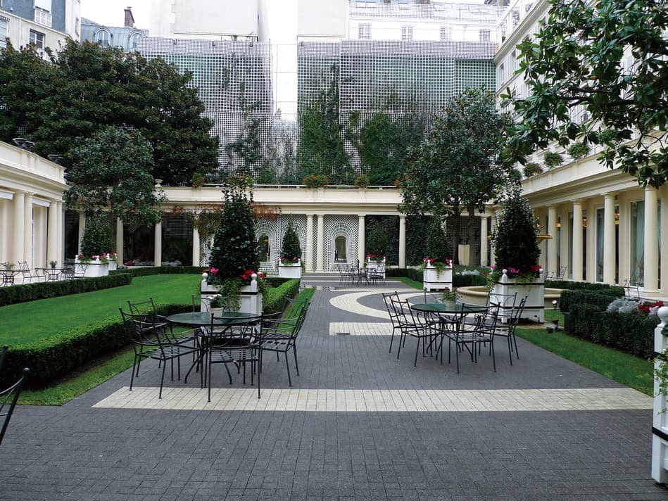 あらためてル・ブリストルを考察すると、高級ブランドが軒を連ねる華やかなフォーブル‐サントノレ通りに位置し、大統領官邸エリゼ宮に近い1925年創業の老舗名門であり、世界中のVIP層を顧客に持ち、ミシュラン3ツ星レストラン「Epicure」を抱えるホテルとして、まさにパラスの称号にふさわしい。ホテル正面玄関にはパリ造幣局で特別に鋳造されたゴールドのプレート「PALACE」が誇らしげに輝いている。広大なフランス式庭園を中庭に持ち、マグノリアなどの木々が枝葉を広げるこの庭は、たおやかな親しみやすさを感じさせる。これほど贅沢な空間はパリにもそうあるものではない。