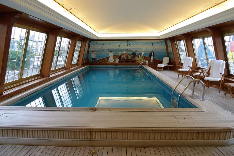 19世紀のヨット船室に迷い込んだ感覚になるスイミングプール