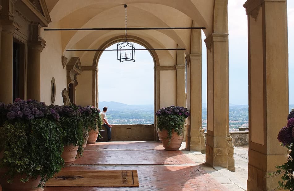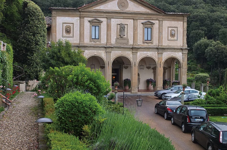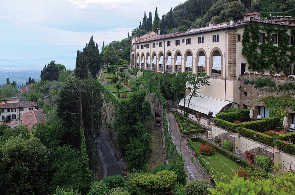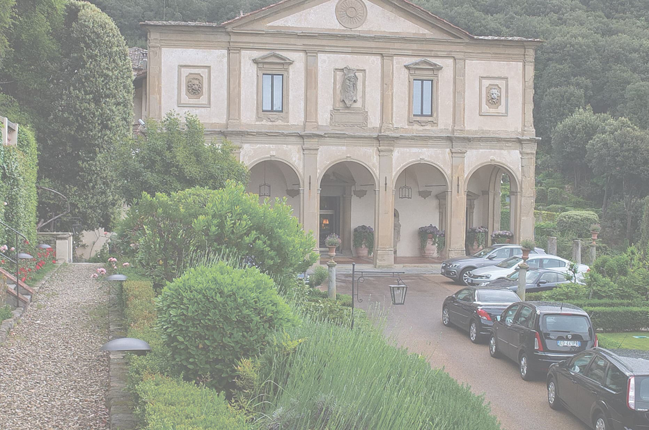ホテル建物の起源が15世紀初頭のフランシスコ派の修道院まで遡ると言えばビックリするであろう。さらに正面ファサードは、ルネッサンスの巨匠ミケランジェロの手により設計されたと聞けば尚更のことである。フィレンツェの中心部から車で20分の郊外、市街地を見下ろすフィエーゾレの小高い丘の上にヴィラサンミケーレは建ち、その重要文化財にも指定されている白亜の歴史的ホテルがゲストを温かく迎え入れてくれる。館内随所に見られる内装に施された彫刻、壁や天井に描かれたフレスコ画、見事なアンティーク家具の数々は壮麗で優雅な雰囲気に満ちている。ゲストはあたかも有名な大聖堂や美術館に居るような錯覚を感じ、そこに悠久で孤高の美しさを見出すことができる。