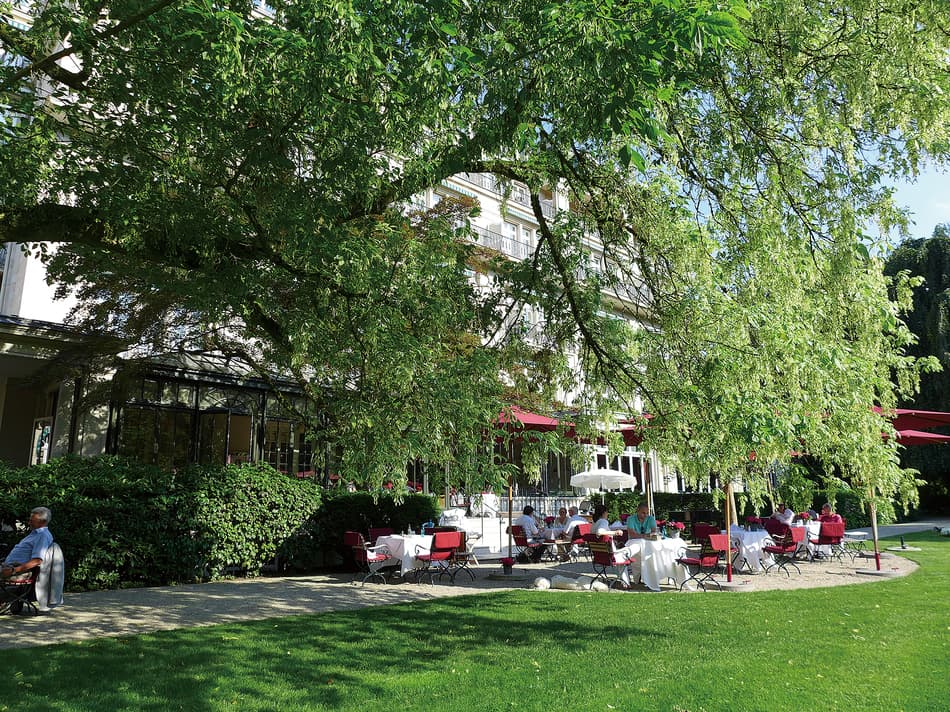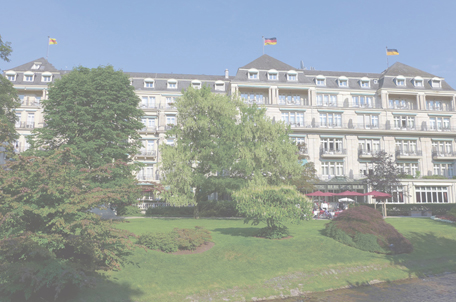 バーデン・バーデンは有名な“黒い森”シュヴァルツヴァルト「Schwalzwald」の北に位置する。温泉地と言っても日本でよく見られる歓楽街的イメージとはほど遠い文化都市で、オペラハウス、カジノ、劇場、美術館、国際会議場などを揃えた保養地である。もちろん主役は温泉であるが、すでに日本語となっている“テルメ”とか“クアハウス”の語源はドイツ語からの温泉用語だ。クアハウスの隣には“飲泉場”「Trinkhalle」があり、フリートリッヒ源泉から湧出する温泉水を飲むことができる。その温泉地を代表するランドマークがブレナーズパークホテルである。ホテルはドイツで最も美しいと言われる公園「Lichtentaler Allee」に面した理想的な環境にある。森の中をせせらぎが流れる小径に沿って大邸宅、高級別荘が点在するヨーロッパでも別格の優雅な散歩道である。