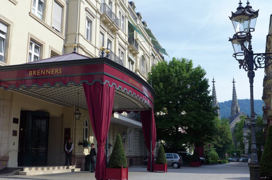 ブレナーズパークホテルの歴史は1872年、この地にあった“ステファニー温泉”「Stepfanienbad」を宮廷服飾人であるアントン・ブレナー「Anton Brenner」が買い取り、ホテルとして開業したことに始まる。現在のホテルは32のスイートを含め、ちょうど100室の豪華な意匠を凝らしたゲストルームを用意している。大型のキャノピーが付いたメインエントランスを入ると、左手にレセプションデスクを見て正面に「Kaminhalle」がある。ホテルの中心的役割を担うゴージャスなラウンジであり、その先にミシュラン1ツ星レストランの「Brenners Park-Restaurant」と“温室”とか“冬の庭園”と言う意味の陽光が降り注ぐオールデイダイニング「Wintergarten」がある。さらに朝食だけのために用意された「Salon Lichtental」には専任のコックが立ち数多くのメニューを提供している。スパ「Baden-Baden Spa」 はホテル成り立ちの核心部分でもあり、ローマ帝国の時代を彷彿させる貴族趣味的なスイミングプールなど諸施設の完成度には目を見張る。また、温泉療法の本場でもありメディカルの要素を加味した「Medical Spa」は注目である。