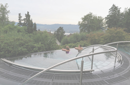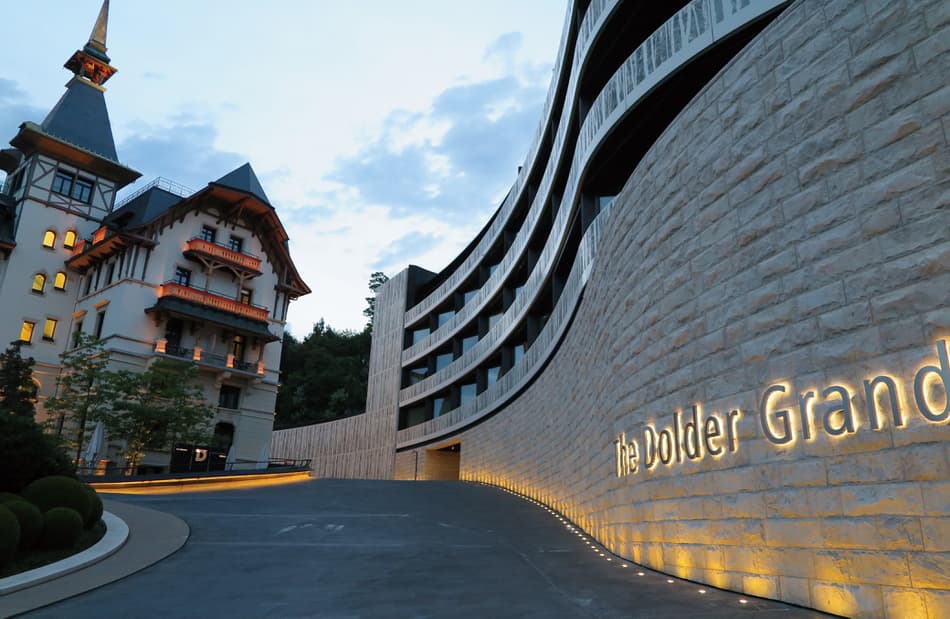 驚くかもしれないが、ドルダーグランドは専用のケーブル軌道を保有し山麓とホテルのある高台を結んでいる。広大な敷地に伝統の本館とスタイリッシュな新館が融合されたホテルは実に機能的で美しい。100年以上前の建物を徹底的に修復し、近未来的な新館を何の違和感なく増設して現代のニーズに適合させる。まさに日本のホテルリニューアル事業に大きなヒントを与える贅沢な提言と言える。