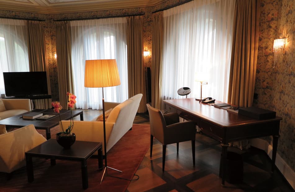 ドルダーグランドはスイートを含め全176室のゲストルームを擁し、まるで物語に出て来る様な古城をイメージさせる本館建物が印象的だ。館内は伝統とモダンを調和させた気品あるインテリアで、新館とを結ぶ回廊は洗練されたアート感覚が魅力である。筆者にアサインされた部屋は、本館中央に位置したスイート「Suite Deluxe」で、約100㎡の広さを持ちバルコニーからは広大なゴルフコースと遠くチューリッヒ湖が見渡せる。メインダイニング「The Restaurant」は、名画が飾られた雰囲気の中、本格的フランス料理を堪能できるミシュラン2ツ星のレストランである。オールデイダイニング「Garden Restaurant」は、チューリヒの街を望めるテラス席がお勧めだ。また、ヒーリングスポットとして有名なセドナを拠点に活躍するシルヴィア・セピーリ女史が担当したスパ「Dolder Grand Spa」は、欧州と日本のスパ要素を取り入れた独自のスタイルで、総面積4000㎡というゴージャスな施設である。
