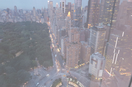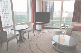 セントラルパークと5番街のコーナーの一等地に建つプラザがNYの伝統を引き継いだランドマークであるのに対し、セントラルパークとブロードウェイのコーナーにそびえ建つMO/NYは、躍動するNYの今を象徴した若きチャレンジャーであろう。今日ではセントラルパークが一望できるホテルは新しく建てる土地も当然ない。ここから望むNYの印象的な摩天楼の景観を充分に楽しんで頂きたい。