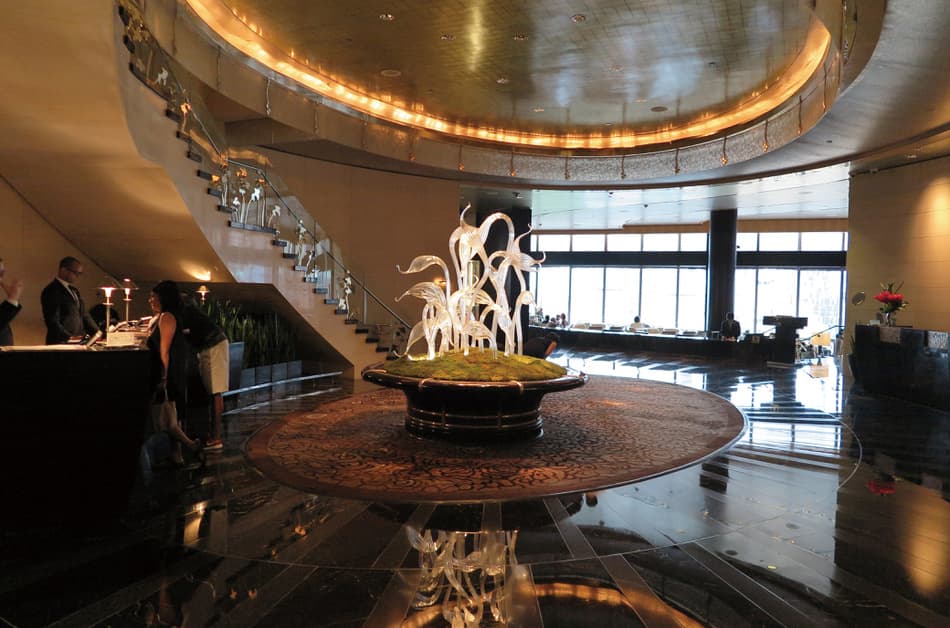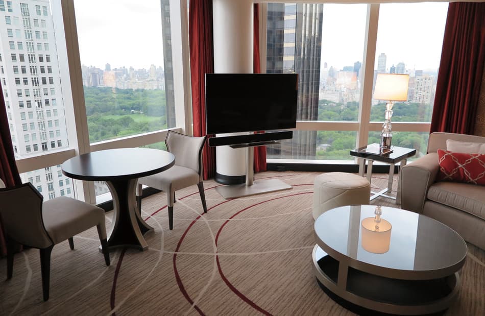 ニューヨークで、今いちばん旬のホテルであろう。ホテル内のレストラン・バーは、スノッブなニューヨーカーでいつもにぎわっている。「Mandarin Oriental, New York」(以下、MO/NY)は、セントラルパークの南西コーナーにあるアメリカ初の円形交差点“コロンバス・サークル”「Columbus Circle」に位置する都会的で洗練されたラグジュアリーホテルだ。巨大コンプレックス「Time Warner Center」のノースタワー内にあり、35階から54階までがホテルとして占めている。客室は驚くほど現代的デザインと1940年代の趣を融合したエレガントなインテリアで、東洋趣味的な要素も多く採り入れられている。