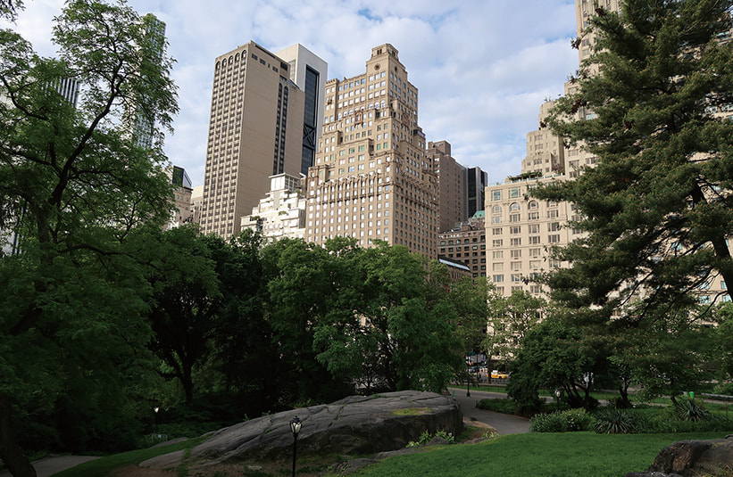 リッツ・カールトン/CPが立地するセントラルパーク・サウス周辺はニューヨークでも最高の立地条件を誇り、東西の角には、それぞれ「The Plaza」、「Mandarin Oriental」の一流ホテルが構え、そのほか高級レジデンス、レストランが並んでいる。ホテル前にある横断歩道を渡ると、そこはもう静寂の世界が広がるセントラルパークで、朝夕の森林浴の散歩に最適の住環境と言える。
