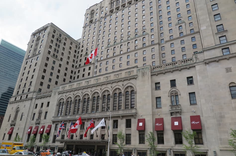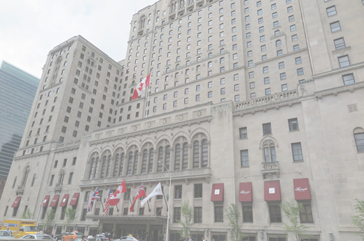 「Fairmont Royal York」、まるで周囲をするような巨大なホテルである。28階建て高さ124mの外観はヨーロッパのシャトーを彷彿とさせる壮麗な造りで、かなり離れた場所からようやくホテル全景が見渡せる。開業当時から客室数は1000室以上と、実にイギリス連邦で最大級のホテルとして君臨していた。創業は1929年、開通したばかりのカナダ太平洋鉄道(CPR)の駅と直結する大型ホテルとして盛大にオープンした。トロントを代表する歴史的ホテルであり、この街のランドマークとして市民に親しまれている。ホテルの目の前には豪壮なユニオン駅があり、ここは人々が行き交うターミナルのような存在でもある。