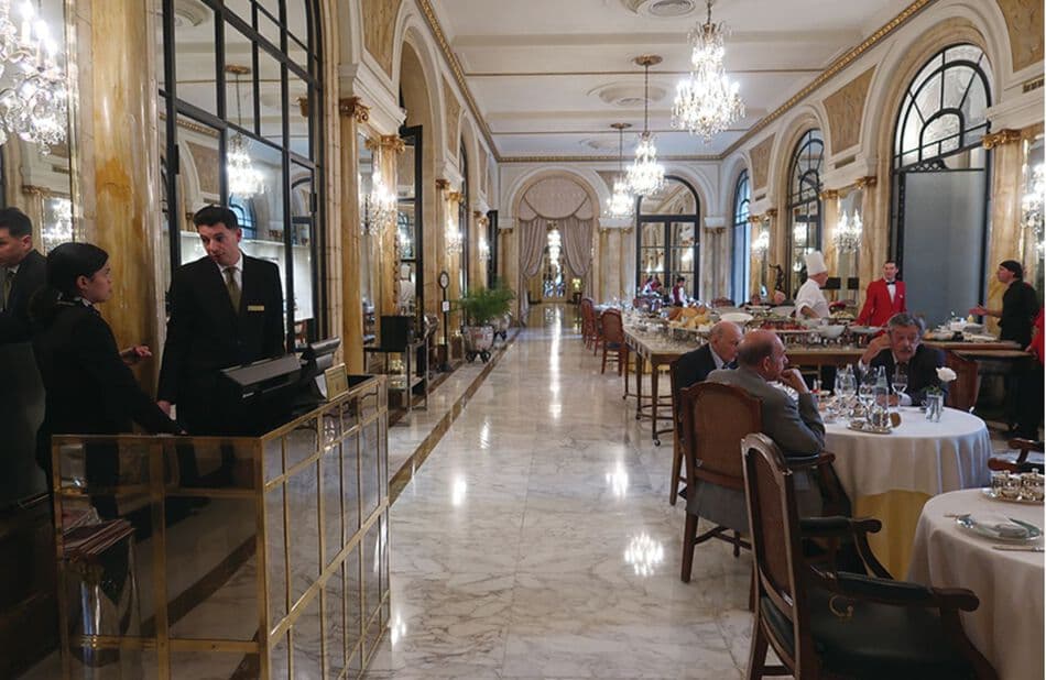 ブエノスアイレスのレコレータ地区は上流階級の人々が集う気品ある高級住宅街である。この一角に壮麗なベルエポック様式のアルヴェア パレス ホテル「Alvear Palace Hotel」が佇んでいる。ヨーロッパからの富裕層が滞在する高級ホテルとして1932年に開業したアルゼンチン屈指の格式を誇るホテルだ。周辺には、この街でも指折りのレストランやショップが並び、商業地区の雑踏とは無縁の空気が流れる。ホテル正面ファサードを飾る年代物の美しい縞模様の石壁はすべてパリから運び込まれたもので、南米のパリと称されるブエノスアイレスの香りが漂う。館内は絢爛豪華な装飾が施され、高い天井から下がるシャンデリアが磨きこまれた大理石のフロアと贅を凝らしたペルシャ絨毯を照らしている。