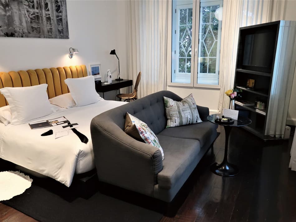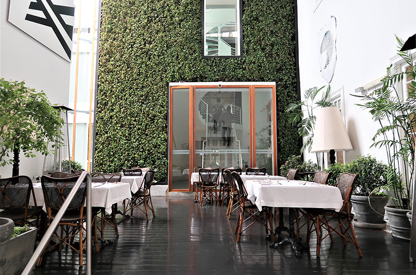 Hotel Bは歴史的な邸宅マンションと増設された新館から構成され、3つの違ったタイプの客室「Alcoba」「Aposento」「Atelier」の17室を数える。今回は約40㎡の広さを持つ最上級タイプの「Atelier King Bed Room」を紹介したい。コンテンポラリーにしてクラシカルな雰囲気が漂う部屋で、玄関前の落ち着いたフォイエー「Foyer」がゲストを出迎えてくれる。朝食はアットホームな雰囲気のブレックファストルーム「El Patio」で用意され、クオリティの高いメニューを堪能できる。メインダイニング「El Restaurant」はバーラウンジとディナーセッティングに分かれ、バーカウンター背後に色彩豊かなペインティングが飾られ心地よい気分に浸れる。