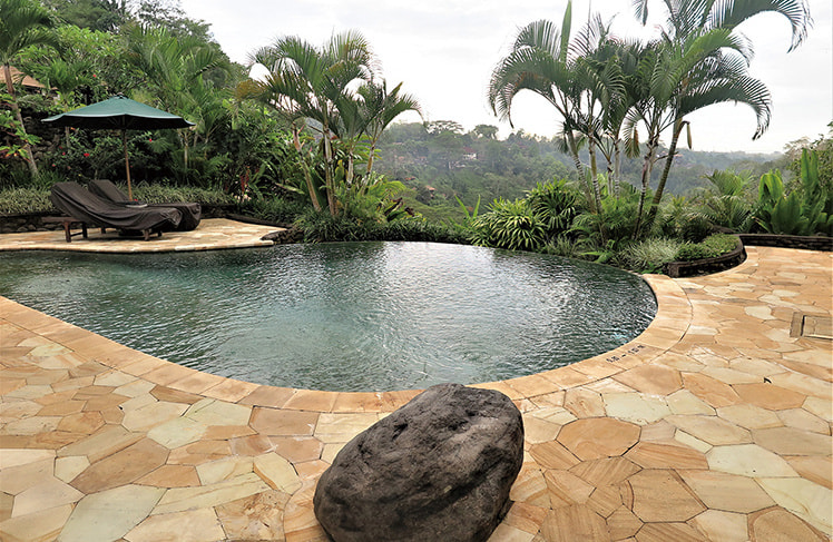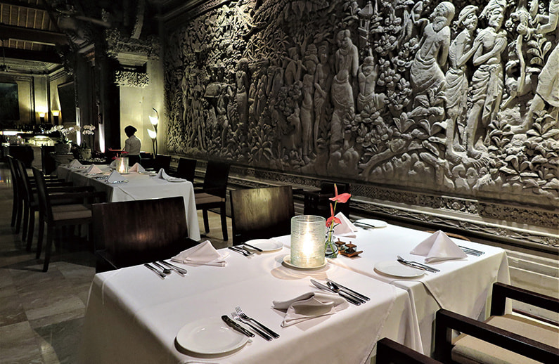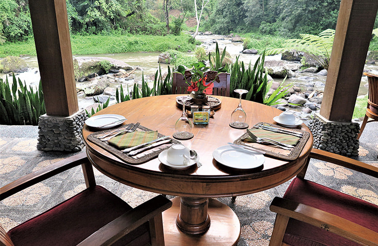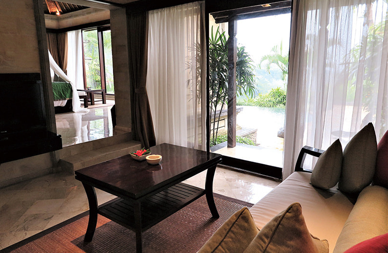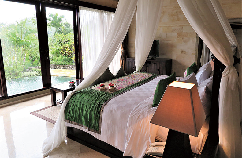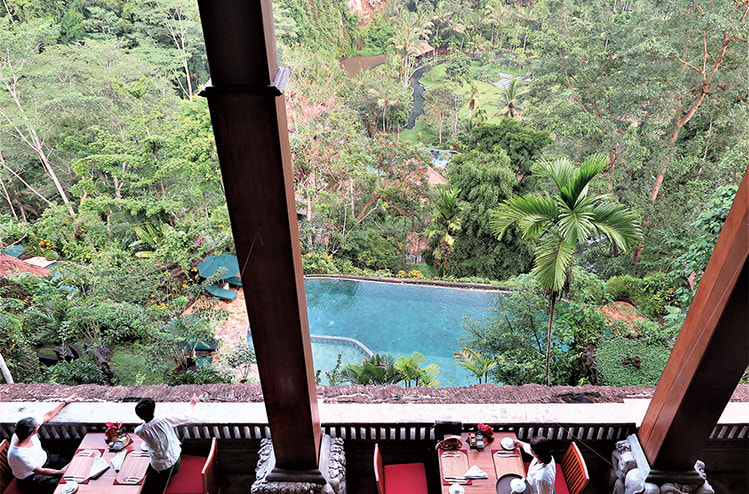 ロイヤル ピタマハはウブド王家の子息が自らデザインし、建築過程に妥協を許さずに着手した完成度の高いホテルだ。今回は大きな専用プールが付いた「Royal Pool Villa」をご紹介したい。1棟あたり約300㎡の面積を持つ渓谷ビューのヴィラで、部屋は王族の伝統を受け継ぐバリスタイルに保たれている。レストランは3カ所あるが、とくに最上階にあるメインダイニング「Dewata Lounge」はホテルの顔とも言えるレストランで、テラス席から壮観な景色を見渡せる。朝食はオールデイダイニング「Ayung Valley Restaurant」のビュフェスタイルがあるが、お勧めはアユン川のほとりにある「Ayung Garden Restaurant」で、オープンエアの自然が奏でる音に心を癒やされる。かつて資生堂がプロデュースしたスパ施設「Royal Kirana Spa & Wellness」は独立したスパヴィラ13棟からなり、喧騒の世界から究極のリラクゼーション空間に誘う。