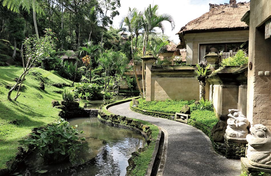 リゾートの名称であるピタマハとは現地の言葉で「ピタ光・マハ輝く」という意味を持つ。ピタマハグループは1928年、ウブドで最初のホテルとして「ホテルチャンプアン」を創設。かつては芸術家達の集うホテルでもあり、多くの著名な人材を暖かくもてなしてきた。後に隣接して隠れ家リゾートの先駆者となった姉妹ホテル「ピタマハ リゾート」の建設を経て、ザ・ロイヤル ピタマハをオープンさせた訳だ。“リゾート全てが芸術作品”と評されるほど、敷地内の至る所に絵画や石像・彫刻作品が溶け込み、神々へのお供え物やお香の残り香などバリ・ヒンドゥー教の伝統文化を肌で感じられる。