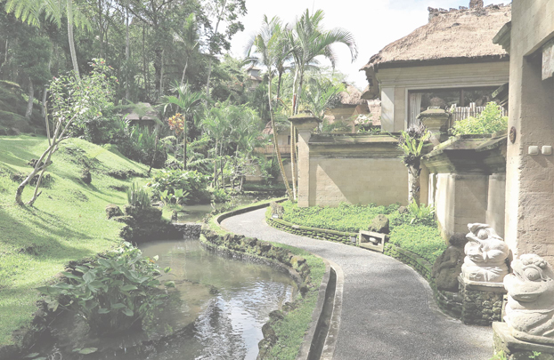 “ウブド王家のホテル” ザ・ロイヤル ピタマハ「The Royal Pita Maha」。まさにバリらしいホテルとはこのホテルのことを言うのであろうか。芸術の村ウブドの大自然を流れるアユン川渓谷にこの地の王族が4年の歳月を経て建設し、2004年に完成した王家の伝統を受け継ぐ隠れ家リゾートである。渓谷を一望する絶景リゾートの建設にあたり、バリ島中の芸術家がリゾートのために大集結し、バリ・ヒンドゥー教の伝統・文化に基づいた絵画や石像や彫刻の数々を制作した。“神々の集う場所”と言う名前が付いたクデワタン村の大自然とリゾート内のさまざまな伝統芸術との融合は圧巻と言える。