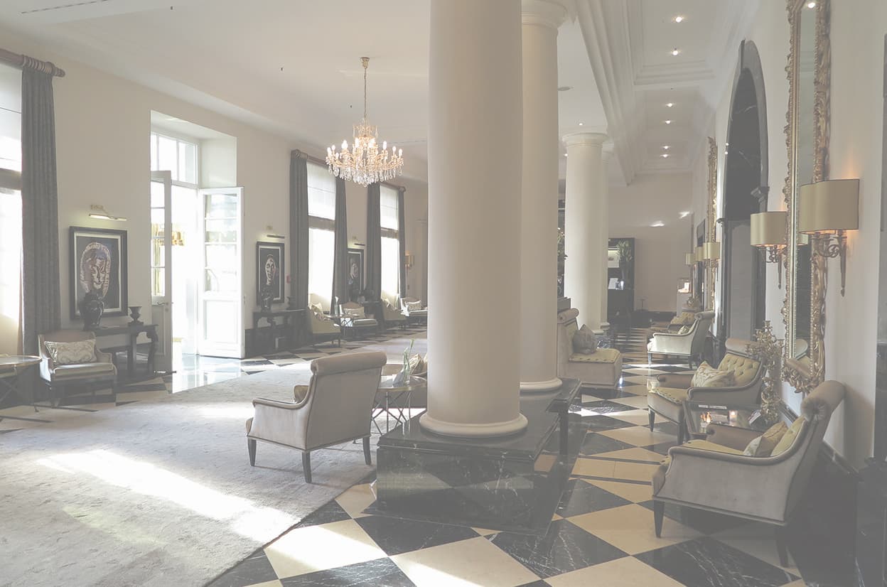 ケルン郊外、ベルギッシュ・グラッドバッハの高台に中世の古城を彷彿させる堂々たるホテルが建っている。ホテルの名は“アルトホフ グランドホテル シュロス ベンスベルク”「Althoff Grandhotel Schloss Bensberg」。車で近づくと、壮麗なバロック様式の城郭に続く広大な中庭の演出により、まるで魔法に魅せられたかの様な風景のシーンに到着する。300年程前に建てられたベンスベルク城の館は、どこからでも見晴らせる丘に建ち、遠くケルンの大聖堂と街並みを一望できる。