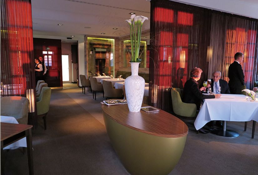 広大な前庭、バロック様式の尖塔、フレスコ画で飾られた幾つもの広間、シュロス ベンスベルクはヨーロッパ屈指の美しい城館である。さらに、このバロック様式の館は世界有数の3ツ星レストラン「Vendôme」も擁している。パリの名高い広場の名前を冠したのは、ヴィスラーのフランス料理への敬意の表れだ。独立したレストラン建物の前庭から遠く夕陽に染まるケルン大聖堂の“双頭の尖塔”を望み、正装してディナーに向かう高揚感は特別の物がある。