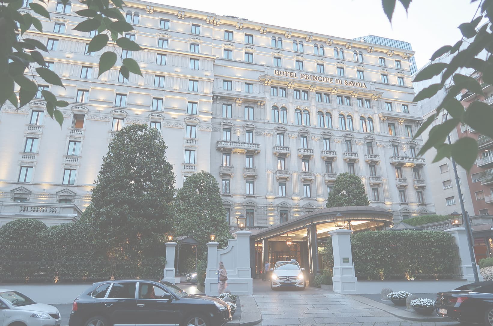ミラノには世界的高級チェーンホテル、著名なデザイナーズホテルなど多くが進出しているが、その中でも屈指の伝統を誇るホテルはプリンチペ ディ サヴォイア「Hotel Principe di Savoia」であろう。ホテルは樹木が茂ったミラノの共和国広場に臨み、そのネオクラシックなファサードからもホテルの風格と歴史が漂う。20世紀の初期、この広場には旧ミラノ中央駅があり、1927年に開業したホテルは駅周辺の再開発という一面を持っていた。創業時はミラノ中心部から北部に位置していたため、“北ホテル”「Hotel du Nord」の名称で営業していたが、後にホテル名は改称され、“サヴォイア家のプリンス”「The Principe」の愛称で親しまれている。